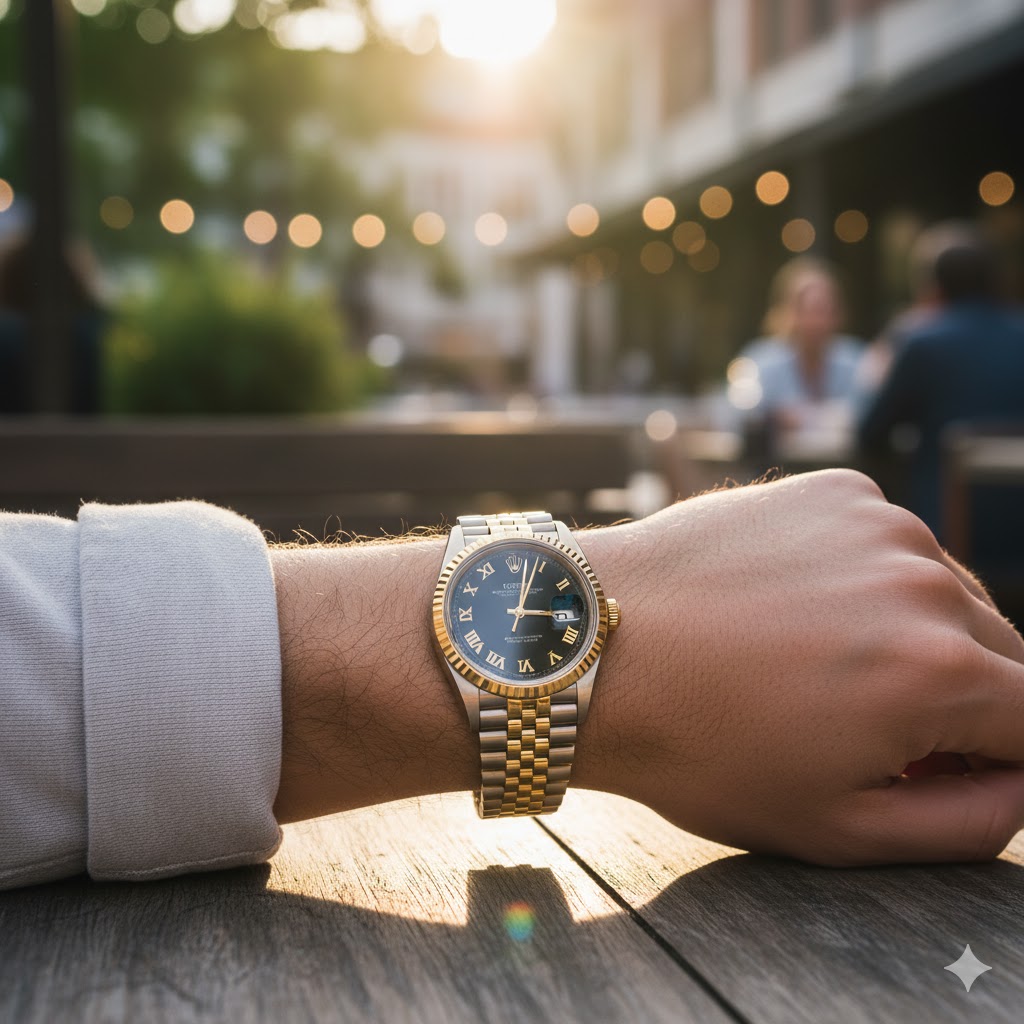 Su combinación dorado–acero lo convierte en una pieza ideal para quienes buscan presencia sin excesos.